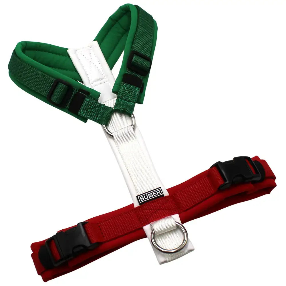 BUMER MULTICOLOR Hundegeschirr, gepolstert ohne geteilten Bruststeg, Größe L, Ringe: silberfarbig (Edelstahl), Schnallen: schwarz